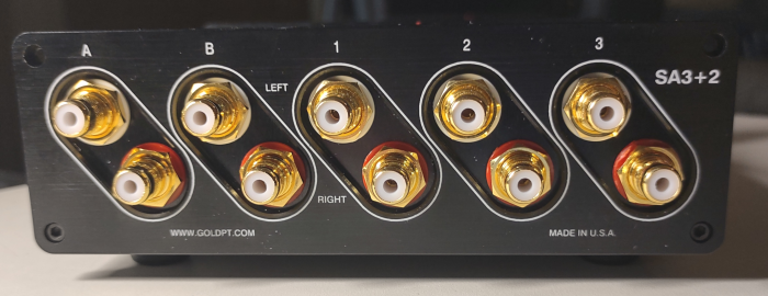 selector switch provides outputs to RCA jack sets A, B, or A+B.. |