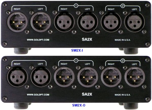 XLR, with gold-plated pins.) SW2X-I: Two 2 XLR Input sets, One Output set. SW2X-O: Two 2 XLR Output sets, One Input set. (These are the same rear panels used on our SA2X Passive Preamps.) |