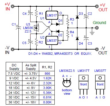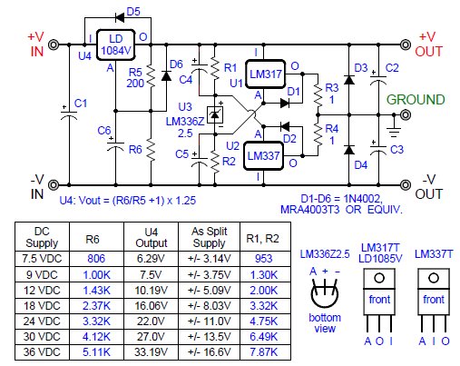 inexpensive LM317/LM337 circuits below are capable of delivering up to